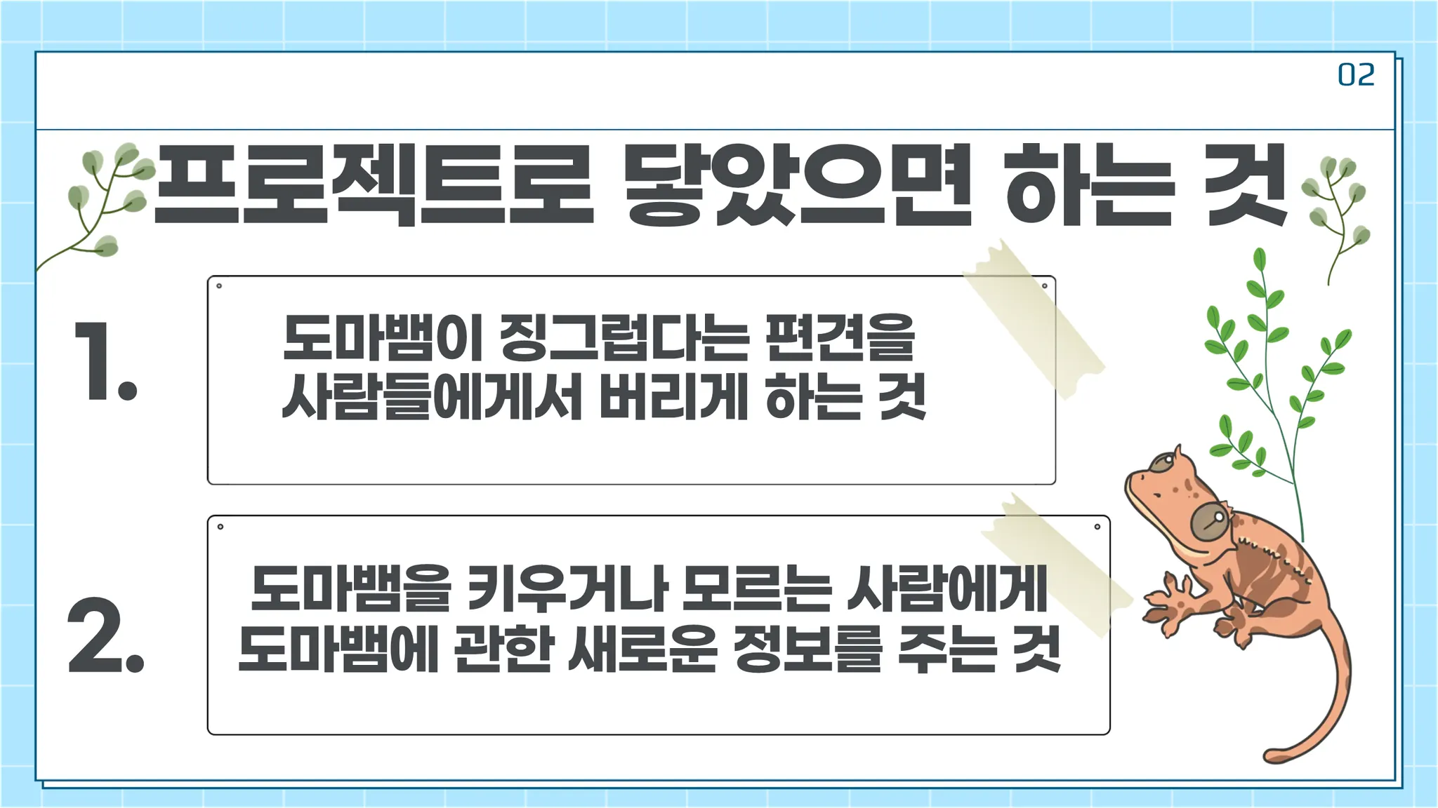 도마뱀과 함께 사회에 기여하는 행사/ 프로젝트를 만들고 싶다.