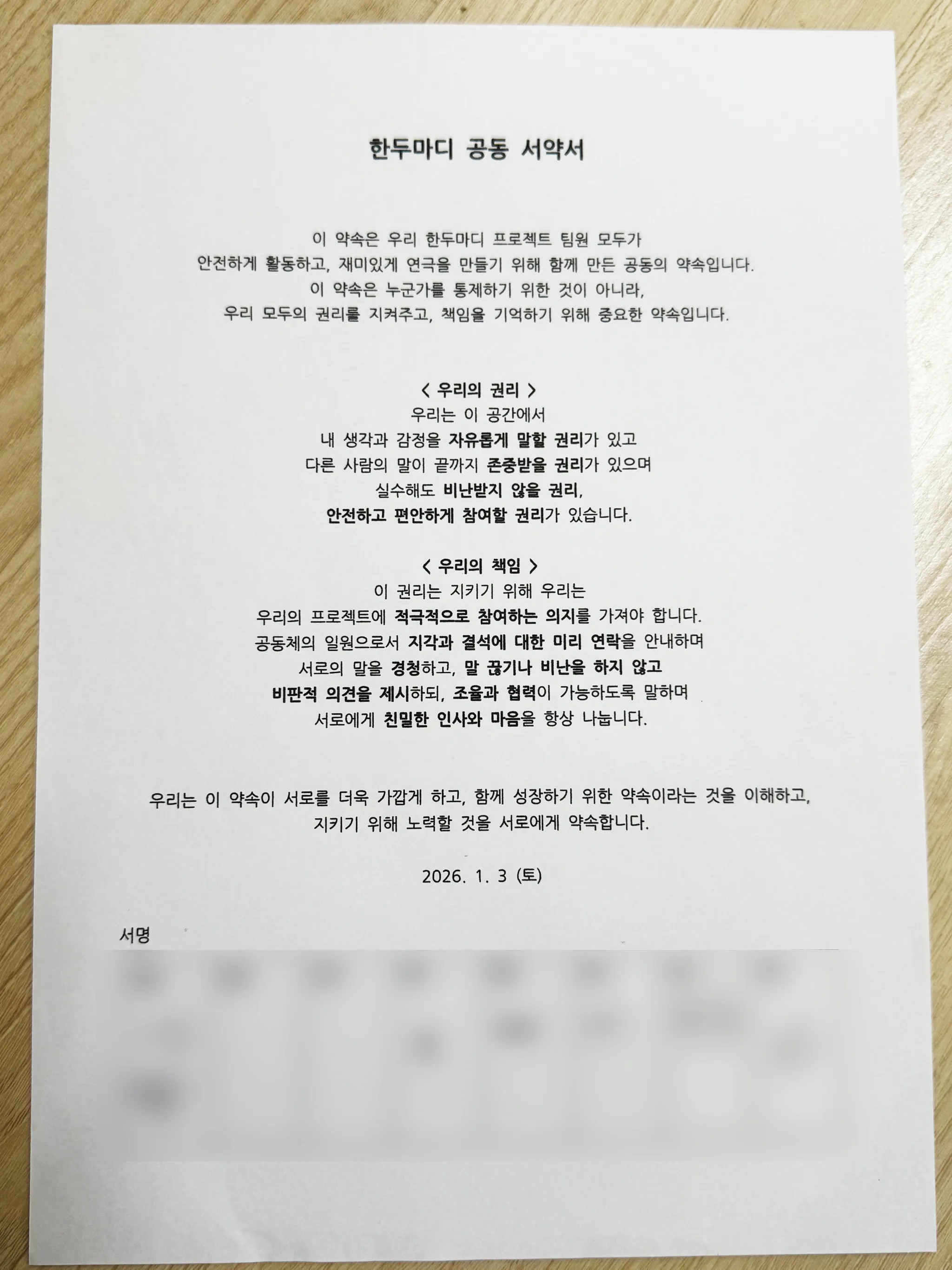 서로의 의견 경청을 잘하자