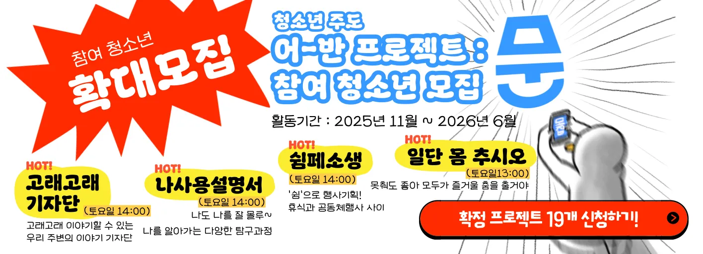 다가치학교-강서양천에서 청소년 주도 프로젝트(어쩌다 반짝반짝 프로젝트<문>) 참여 청소년을 확대모집합니다!