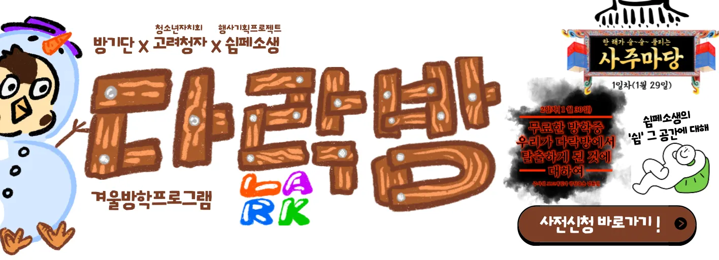 [겨울방학프로그램] 다락(LARK)방 (LARK: ~을 짓거리다)